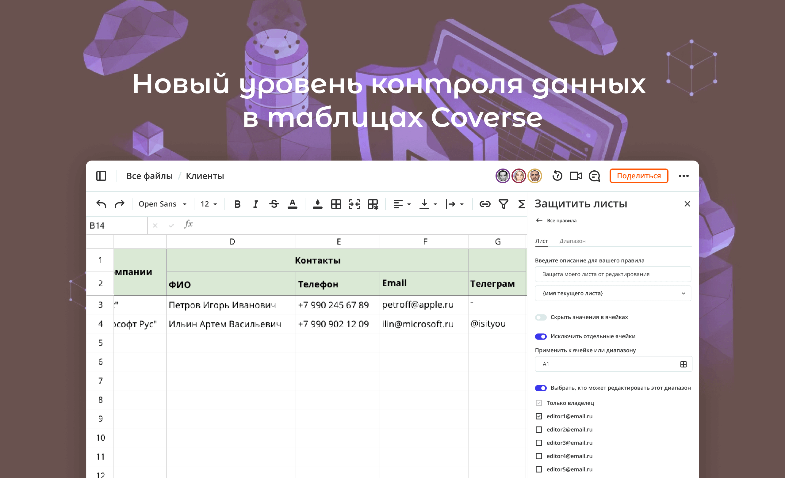 В январе мы сделали важный шаг в сторону контроля данных. Теперь в Coverse можно не просто работать с таблицами, а гибко управлять тем, кто и что в них видит и редактирует.